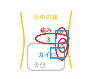 2〜3日前から、骨盤の右上あたり(図・赤1)に違和感が出始めた。最初は「まあ、そのうち治るだろう」と軽く考えていたが、どうも様子がおかしい。思い当たる節といえば、4〜5日前のボーリング。
