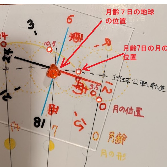 原理は簡単で、昨日の惑星軌道図の代わりに、ひと月の地球の移動と月の位置を示す板を使います。