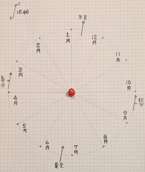 2:太陽を周る地球の公転軌道図。