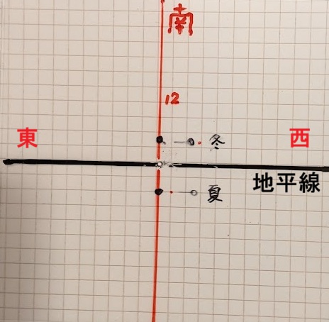 (昼の12時の地平線の様子で、南の空のビューです)
