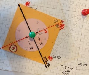 5.ビューシートを月齢盤に重ねて、押しピンで留める。